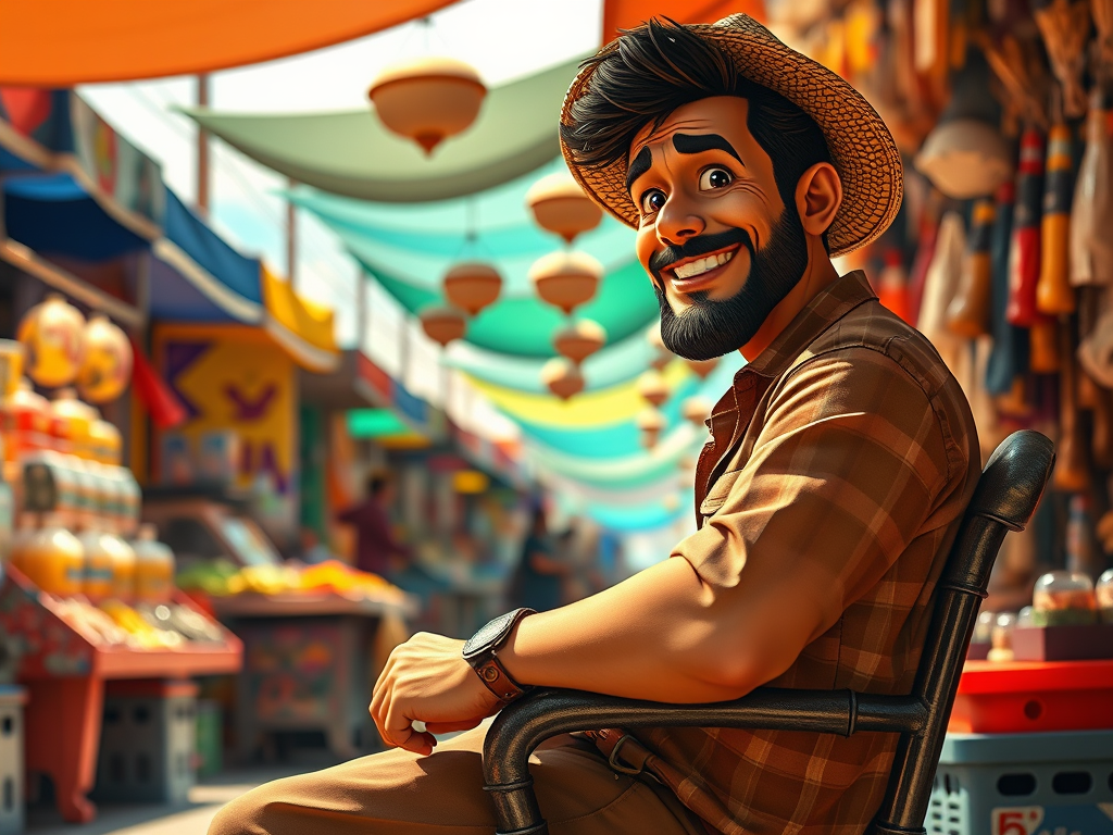 El vendedor de mercadillo estaba sentado en una silla, a la sombra, viendo pasar la gente, tranquilo e inmutable.